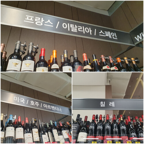 마트 와인코너에 가보면 와인들이 이렇게 분류된 걸 볼 수 있다.
