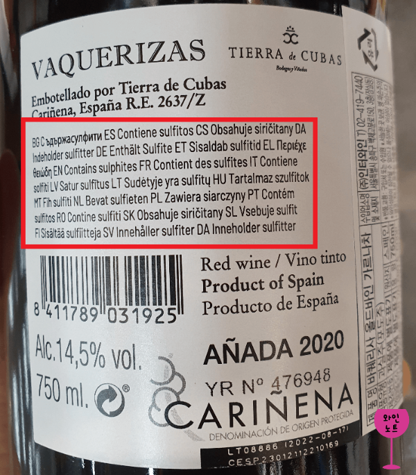 와인 라벨에서 이산화황, 무수아황산, sulfites, sulphites를 어렵지 않게 찾을 수 있다.