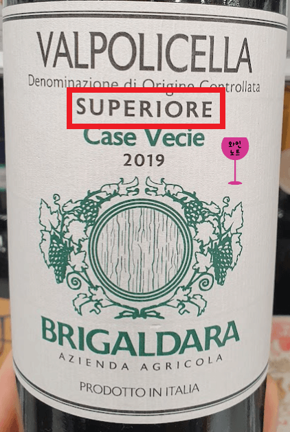 수페리오레 Superiore : 알코올이 약간 더 높고, 단위 면적당 수확량이 적으며 숙성을 좀 더 오래 한 와인에 붙는 용어