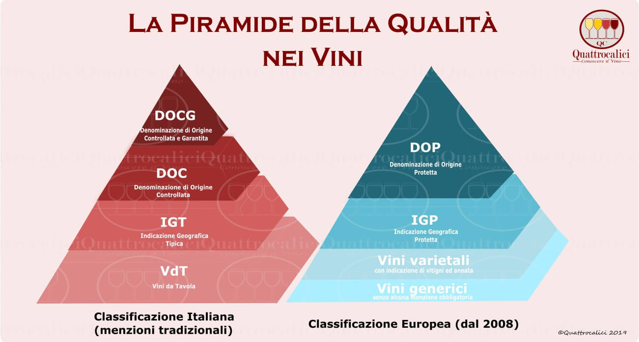 이탈리아 와인의 등급 체계는 4등급으로 이루어져 있다.