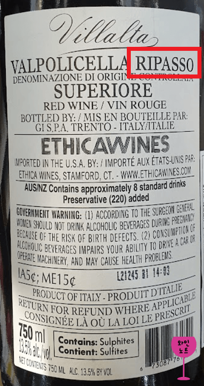 리파소 Ripasso : 아마로네, 레치오토를 만들고 남은 포도 껍질을 재발효시켜 만든 풀바디 와인 스타일