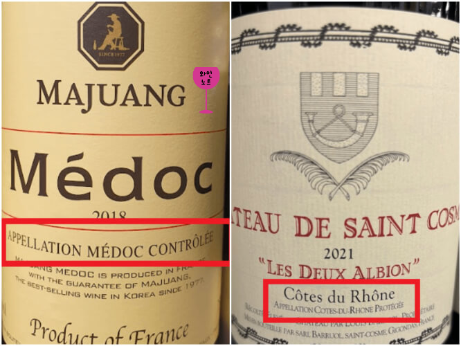 | Appellation Bordeaux Contrôlée : 보르도 지방에서 생산된 포도로 만든 와인 Appellation Médoc Contrôlée : 보르도 지방의 메독 지역에서 생산된 포도로 만든 와인 Appellation Margaux Contrôlée : 보르도 메독 지역의 여러 마을 중에서 마고 마을에서 생산된 포도로만 만든 와인 |
