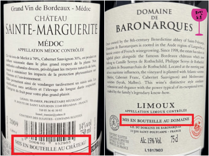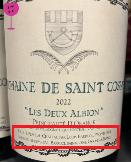 규모가 작은 와이너리인 경우에는 제3자가 대신해서 병입 해주는 경우 표기된다.