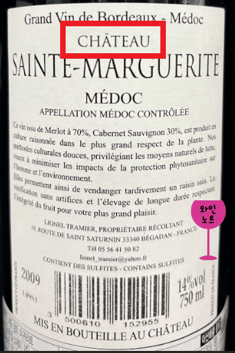 샤토 Château : 포도원이나 자체 포도농장을 가진 와이너리
