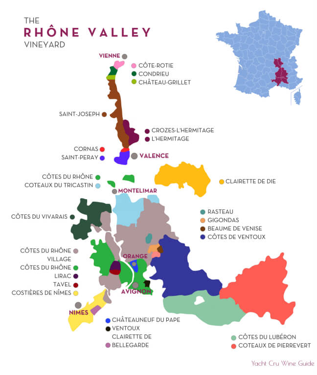 론 밸리의 와이너리는 발랑스(Valence)를 중심으로 크게 북부지역과 남부지역으로 구분한다.