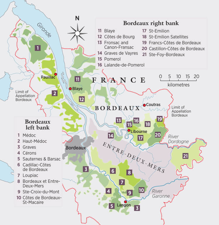 지롱드 강을 기준으로 왼쪽은 좌안, 오른쪽은 우안으로 나뉜다